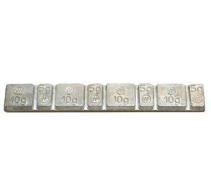 Barrette de plomb d'équilibrage comprenant 4 plombs de 5grs et 4 plombs de 10grs.